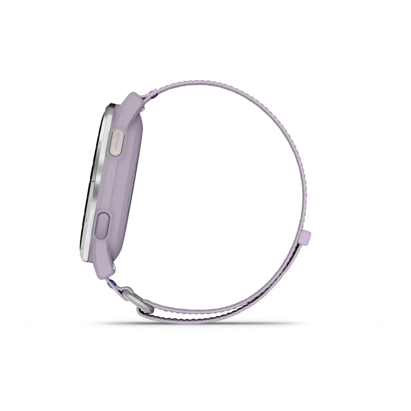 | Ierīces krāsa: Sudraba alumīnija ietvars ar ceriņu krāsas ComfortFit auduma siksniņu |
